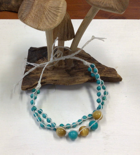 Macrame Turquoise Howlite and Tiger Eye Crystal Bead Bracelet