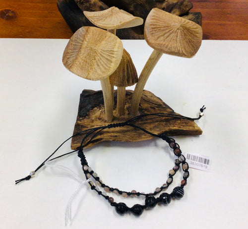 Macrame Black Agate and Moonstone Crystal Bead Bracelet