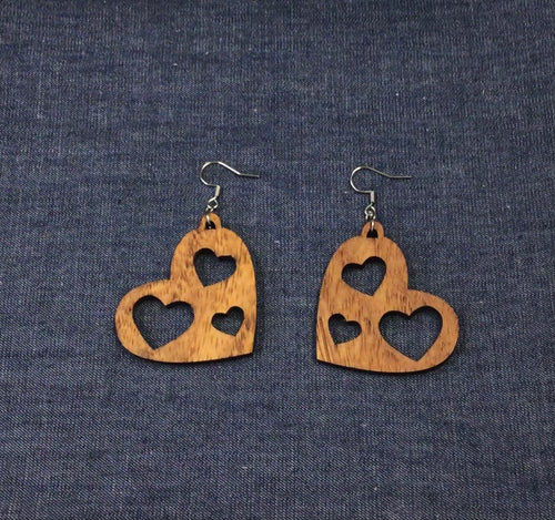 Rosewood 3 Hearts in Heart Earrings by Nev