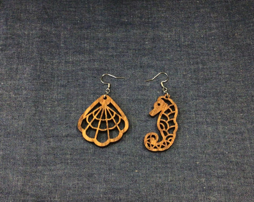 Rosewood Sea Horse and Sea Shell Earrings by Nev