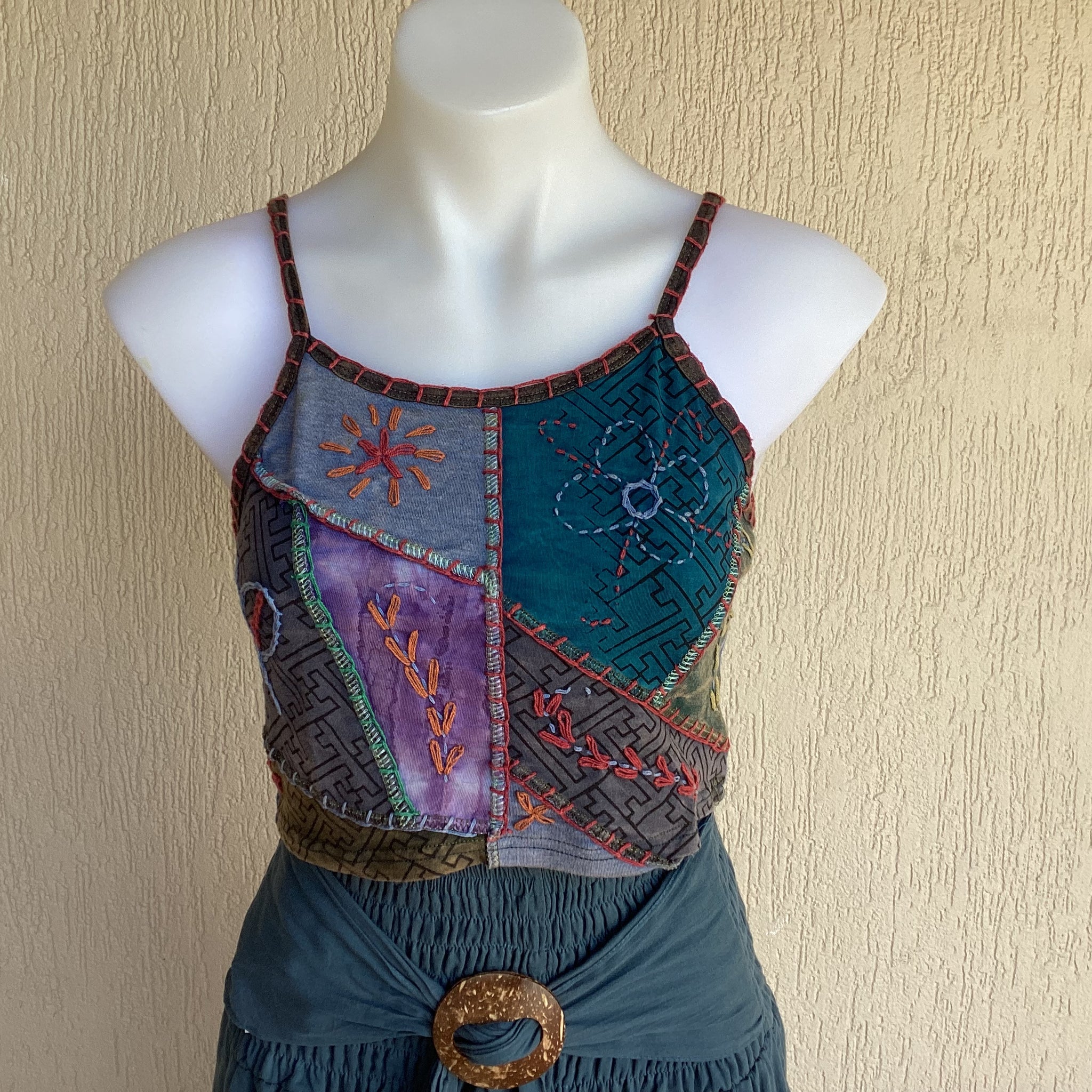 S/M chest 38cm, length from underarm 17cm, length shoulder to hem36cm